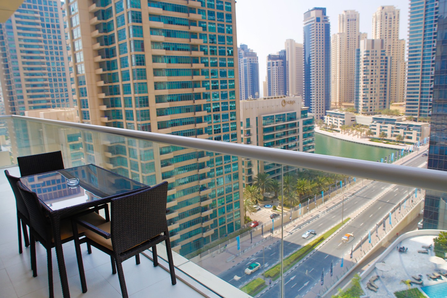 A beautifully designed and appointed two bedroom furnished apartment in Dubai with a big terrace overlooking the beautiful Marina.