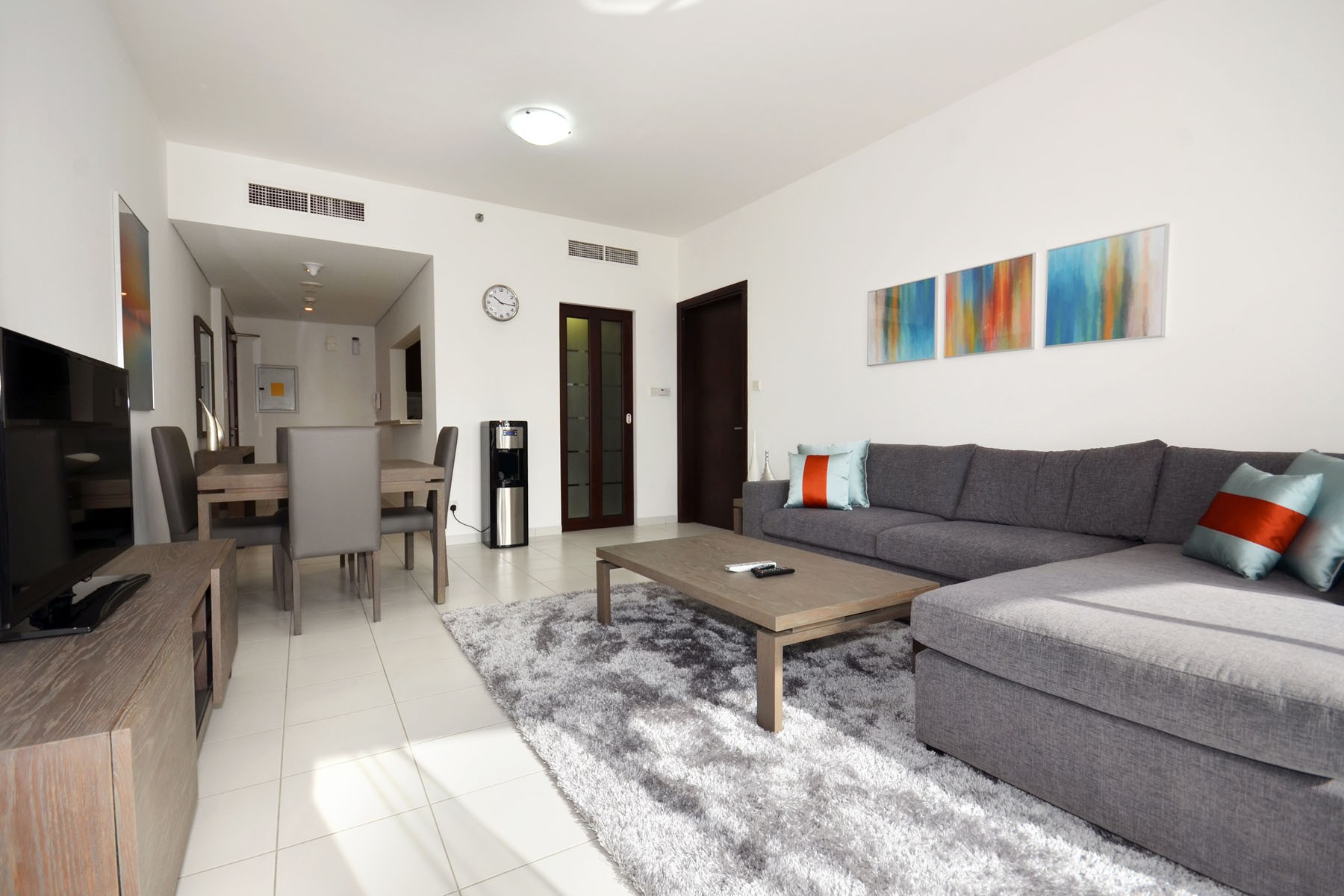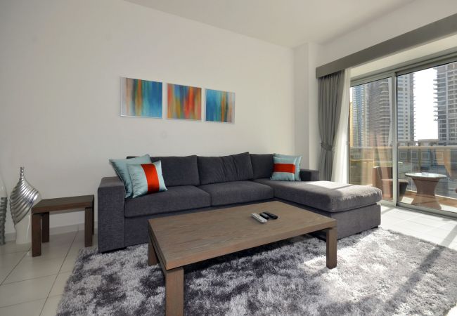 Perfect for a couple or small family, this spacious one bedroom apartment, in a luxury residential tower, is ideally located right on the Dubai Marina waterfront. The apartment is also only a five minute walk to Dubai's most popular beach, and the famous JBR Walk. The property is benefits from lovely open views of the marina, the building swimming pool, and partial views of the sea. The designer interiors emphasize the views, while also offering all comforts and amenities required by our guests. A full list of standard Hometown features are detailed below: